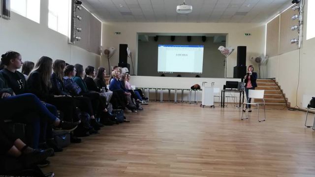 Tarp mokinių ir žurnalistės vyko labai šiltas dialogas. Žurnalistė atsakinėjo į visus mokinių užduotus klausimus, pasakojo apie savo svajonę tapti žurnaliste, apie savo nepaprastą laidų vedėjos darbą televizijoje. Taip pat papasakojo apie savo pomėgius, meilę šunims. Pasidalino savo mintimis apie tai, kad gerai gyventi galima ir Lietuvoje, nebūtina išvažiuoti į užsienį.