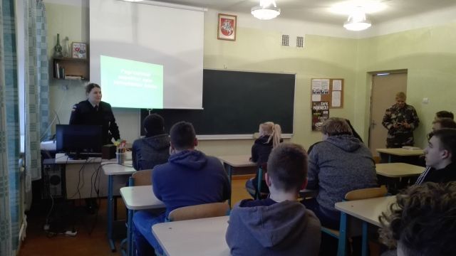 Jovita Vinciūnienė papasakojo apie pagrindines tarnybinių šunų veisles, į ką reikia atkreipti dėmesį renkantis tarnybinį šunį. Jaunieji pasieniečiai sužinojo, koks turi būti tarnybinio šuns pageidautinas elgesys. Neįtikėtina buvo tai, kad tarnybiniai šunys, kaip ir žmonės, yra skirstomi pagal temperamentą ir intelektą. Pareigūnė paaiškino, pagal kokius kriterijus reikia pasirinkti šuniuką ir kaip atliekamas šuniukų testavimas.