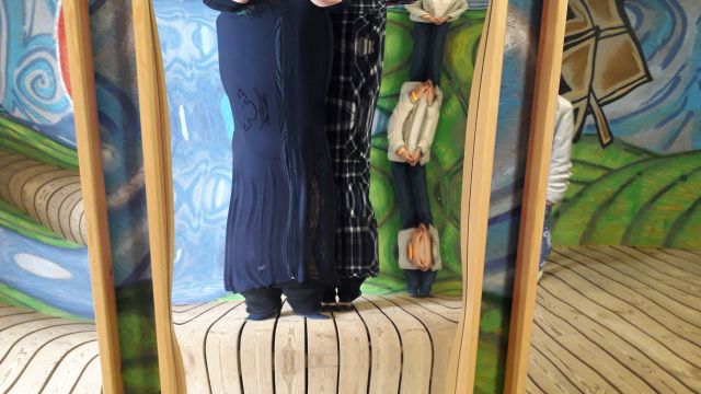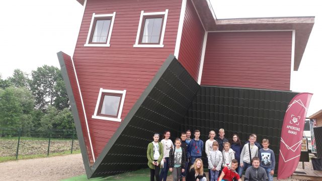 Kita stotelė – Apverstas namas. Čia galėjome išbandyti atvirkščią gyvenimą! Name išvydome apverstą vonios kambarį, svetainę bei miegamuosius kambarius.