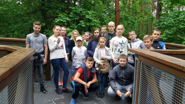 Gegužės 17 d. 2-8 klasių mokiniai vyko į kelionę. Ekskursija prasidėjo nuo Medžių lajų tako. Medžių lajų takas – tai pirmasis takas Baltijos valstybėse ir visoje Rytų Europoje, kur galima pasivaikščioti medžių lajų lygyje. Medžių lajų tako kompleksas yra Anykščių šilelyje. Palyginti nedidelis miškas yra vienas garsiausių Lietuvos miškų. Anykščių šilelį išgarsino žymus Lietuvos poetas Antanas Baranauskas. Jis 1858–1859 metais parašė poemą „Anykščių šilelis“. Keliaujant Medžių lajų taku lydi ištraukos iš kūrinio. Nuo informacinio centro iki Medžių lajų tako pradžios 6 pažintinės stotelės, skirtos susipažinti su medžiais bei su gamtos ir kultūros vertybe Puntuko akmenimi. Medžių lajų takas tęsiasi 300 m ir tolygiai kyla iki 21 m aukščio virš žemės. Tako pabaigoje apžvalgos bokštas, kurio apžvalgos aikštelės aukštis – 34 metrai. Iš čia apžvelgėme apdainuotąjį Anykščių šilelį, pasigrožėjome Šventosios upės vingiais…
