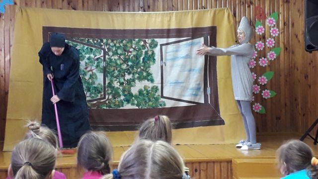 Gegužės 23 d. vaikučius aplankė „Drakoniuko teatras“ su spektakliuku „Lietaus lašelė“. Tai istorija apie Lašiukę, kuri atsidūrė tarp įprastų žmonėms daiktų – knygų (Pasakų Knyga), televizoriaus (Televizorius, 35 kanalai), gėlių (Gėlė Alberta) ir skudurų (Skuduras, Pagaminta Kinijoje). Vaikai pamatė, kad knyga su savo nuostabiausia pasaka gali juos nukelti į įdomesnį ir gražesnį pasaulį nei televizorius. Jie suprato, kad kiekvienas savo gyvenime turime tikslą, kad laimingu galime tapti tik padarius kitus laimingais. Aktoriai ne tik vaidino, bet ir atliko muzikinius numerius bei šoko. Mokiniai aktoriams padėkojo gausiais plojimais.