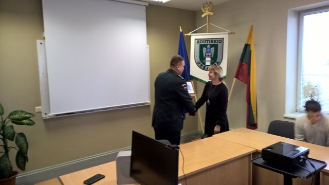 Visi Jaunųjų pasieniečių būrelio nariai vyko į Adutiškio pasienio užkardą. Ten pasitiko būrelio koordinatorė pareigūnė Aušra. Jaunieji pasieniečiai buvo suskirstyti į 2 grupes: „veteranai“ ir „fuksai“. „Fuksai“ turėjo įrodyti, kad verti tapti jaunaisiais pasieniečiais. Pareigūnė Aušra supažindino mokinius su orientavimo žaidimo taisyklėmis. Mokiniai pagal pateiktas užuominas turėjo surasti slaptąjį daiktą ir įvykdyti užduotį. „Fuksai“, lydimi „veteranų“, bėgo nuo vienos užduoties prie kitos. Net lietus nesugebėjo palaužti mokinių valios ir noro tapti jaunaisiais pasieniečiais. Atlikę visas užduotis, mokiniai keliavo tenai, kur pareigūnai semiasi žinių iš išminties gelmių – į užsiėmimų salę. Ten pasitiko Adutiškio pasienio užkardos vadas Leonardas Lukauskas. Pareigūnė Aušra Bečelytė-Zubovienė atraportavo užkardos vadui, kad jaunieji pasieniečiai pasiruošę skaityti priesaiką. Iškilmingai perskaičius priesaikos žodžius jaunuosius pasieniečius pasveikino Valstybės sienos apsaugos tarnybos prevencijos skyriaus vyriausiasis specialistas Marius Zemenskas. Jis naujiems jaunųjų pasieniečių būrelio nariams įteikė ženkliuką „Jaunojo pasieniečio būrelis“. Užkardos vadas įteikė atminimo dovaną – priesaikos originalą. Po iškilmingos dalies laukė kareiviška košė ir arbata su saldumynais. Valgydami košę būrelio nariai klausėsi Stanislovo Rumbučio atliekamų patriotinių dainų.