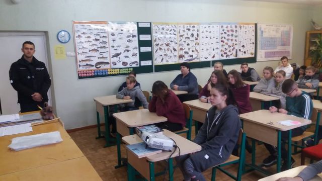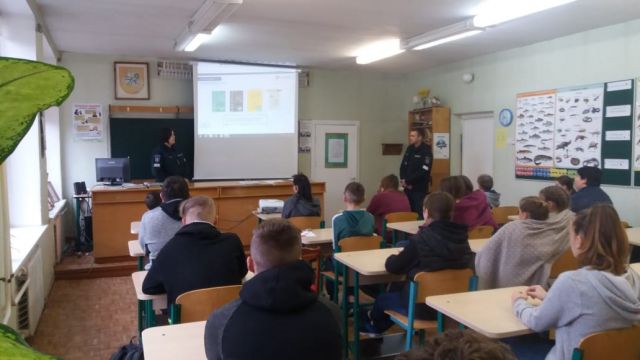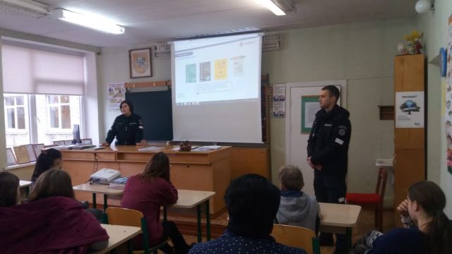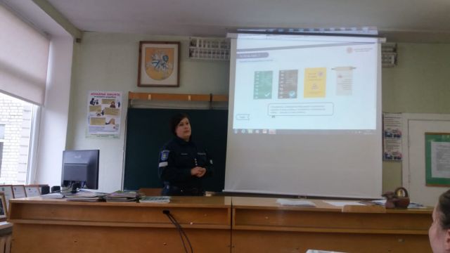 Spalio 10 d. 7–9 klasių mokiniai susitiko su policijos pareigūnais. L. Čeponienė ir G. Kamarauskas skaitė paskaitą apie nepilnamečių teisinę atsakomybę. Pareigūnai paaiškino, kad žmogaus pareiga yra laikytis įstatymų, nevaržyti kitų asmenų teisių ir laisvių. Papasakojo, kad nuo 16 metų asmuo pats atsako už pažeidimus ir formuoja savo teisinę biografiją.